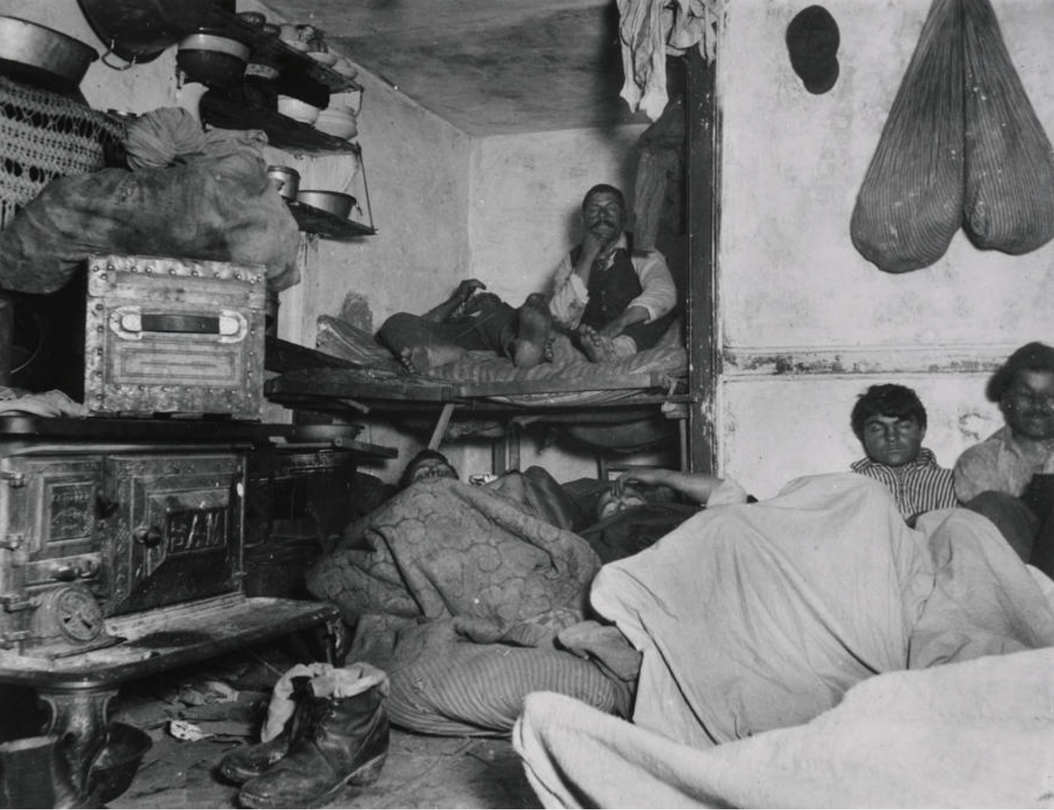 Photograph taken by Jacob Riis, Lodgers in Bayard Street Tenement, Five Cents a Spot. 1889.